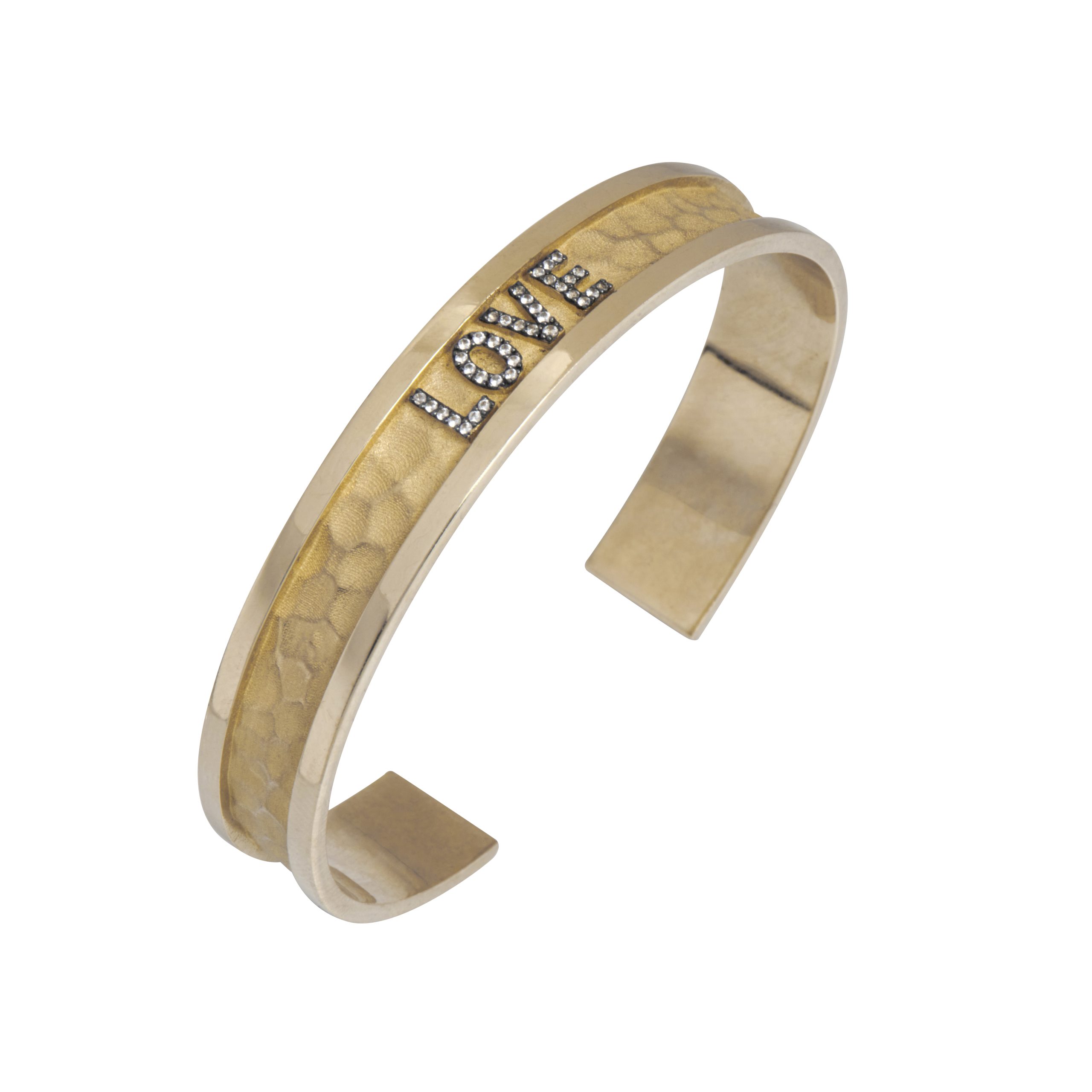Le bracelet Love est composé d’or 14  carats  et pavé de 27 saphirs blancs.
