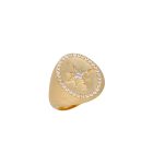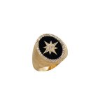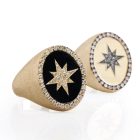 La chevalière étoile de 1,8 cm de longueur et 1,5cm de largeur est composée d’or 14 carats brossé et pavée de 33 saphirs blancs.