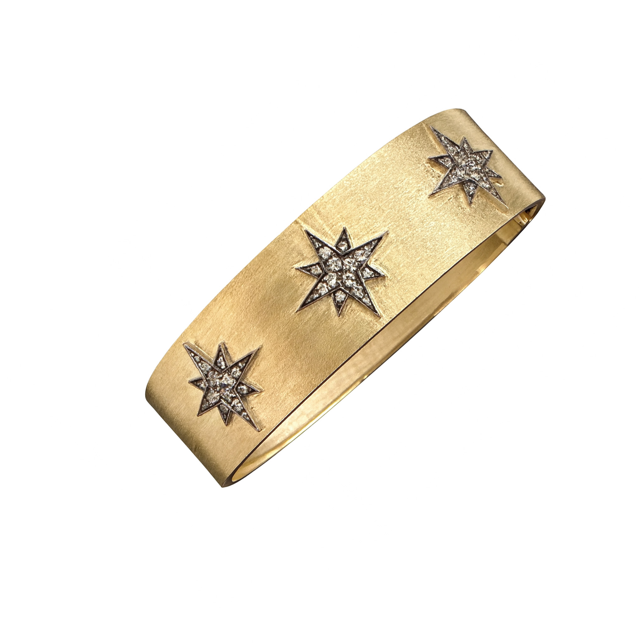 Le jonc Constellation est un jonc en or 14 carats brossé serti de 48 saphirs blancs.