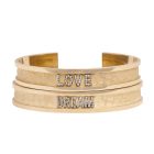 Le jonc Love est un jonc en or 9 carats martelé serti de 37 de saphirs blancs.