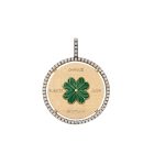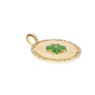 La médaille Lucky est composée d’or jaune 9 carats et d’émail vert.