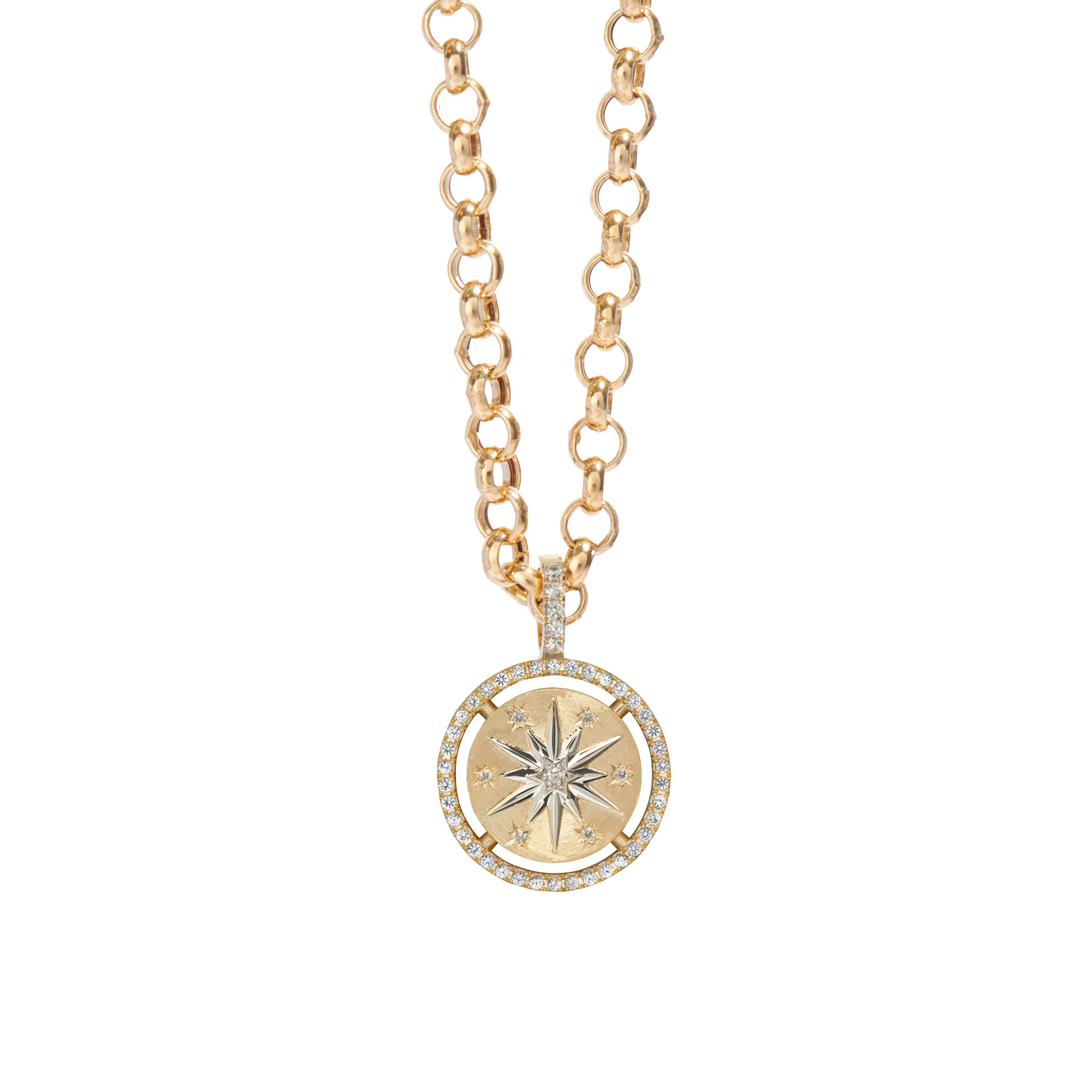 Le pendentif Hai en or 14 carats est 7 saphirs blancs étoilés.